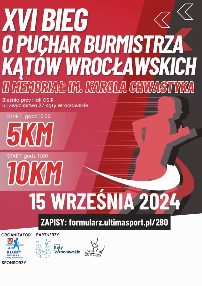 Zapraszamy serdecznie do udziału w XVII Biegu o Puchar Burmistrza Miasta i Gminy Kąty Wrocławskie, który odbędzie się w ramach III Memoriału